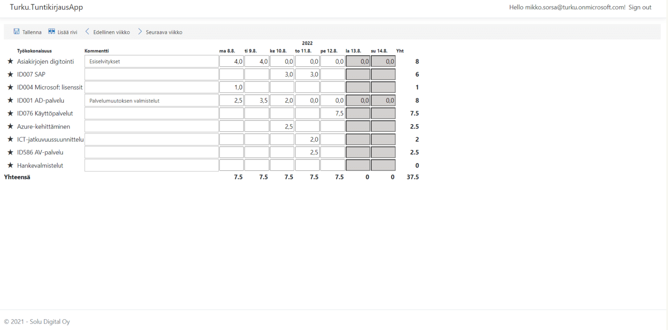 Ennen Solu 365 -työkalua tuntikirjausten tekeminen vaati monelta ihmiseltä paljon enemmän vaivaa, eli projektipäälliköiden piti määritellä tuntikirjausrivit jokaiselle henkilölle, jotta he pystyvät kirjaamaan tunnit. Nykyään tuntikirjausrivit syntyvät tietylle työkokonaisuudelle automaattisesti ja kuka vain tuntikirjaaja pystyy kirjaamaan tunnit riveille suoraan itse.