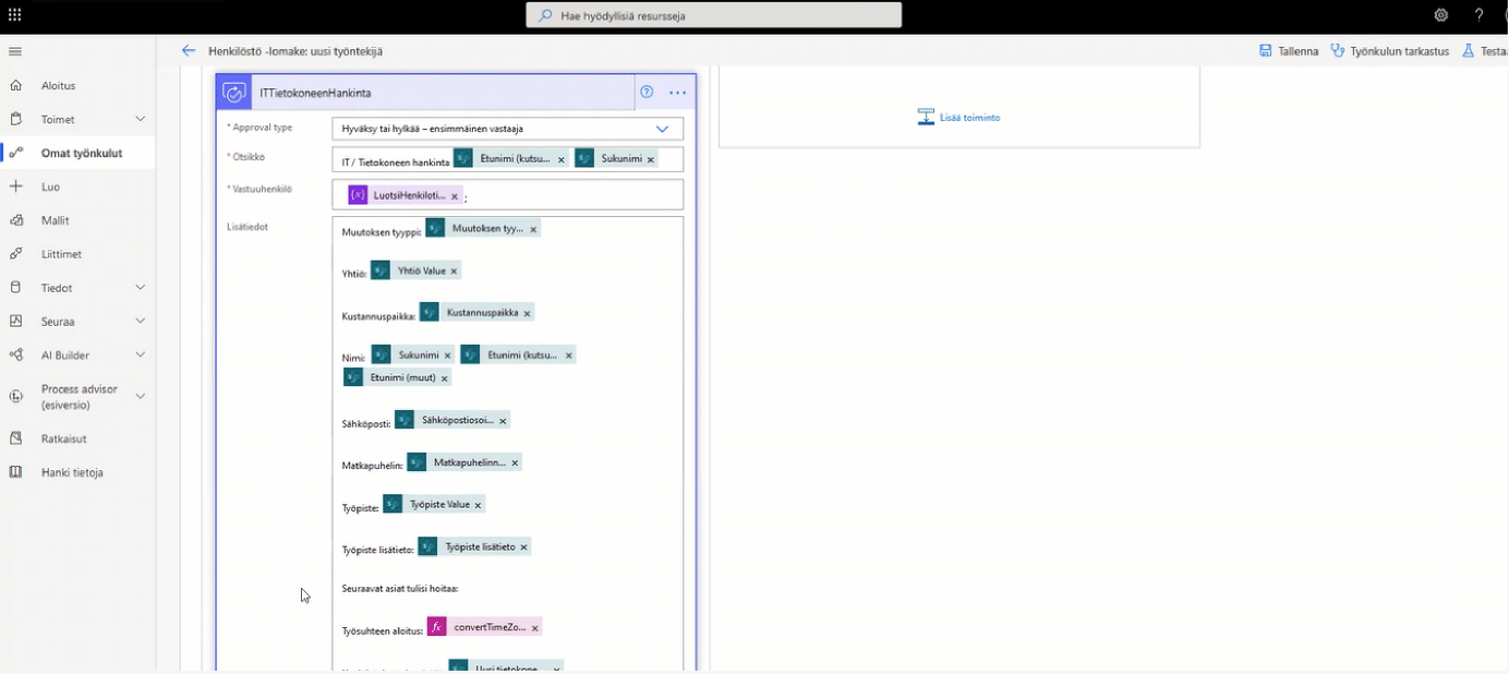 Microsoft Power Automate työnkulkujen suunnitteluun ja toteutukseen